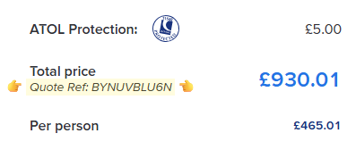👉 Scroll down to the bottom of the summary column, then take a note of your Quote Reference which can be found in the section just above the Per Person cost. That's it!